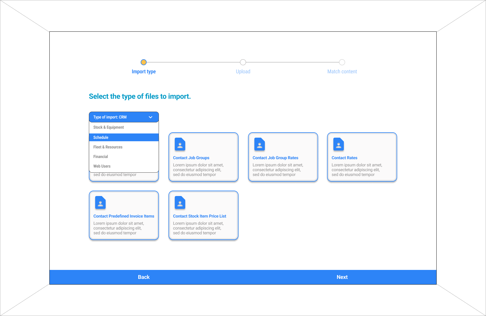 Importing information is a quick and easy method of moving data from one place to another. This is often used when businesses first start using the platform. Information and data about the business like contacts, jobs, resources, etc, are imported to help users start using the platform with their exisiting information.