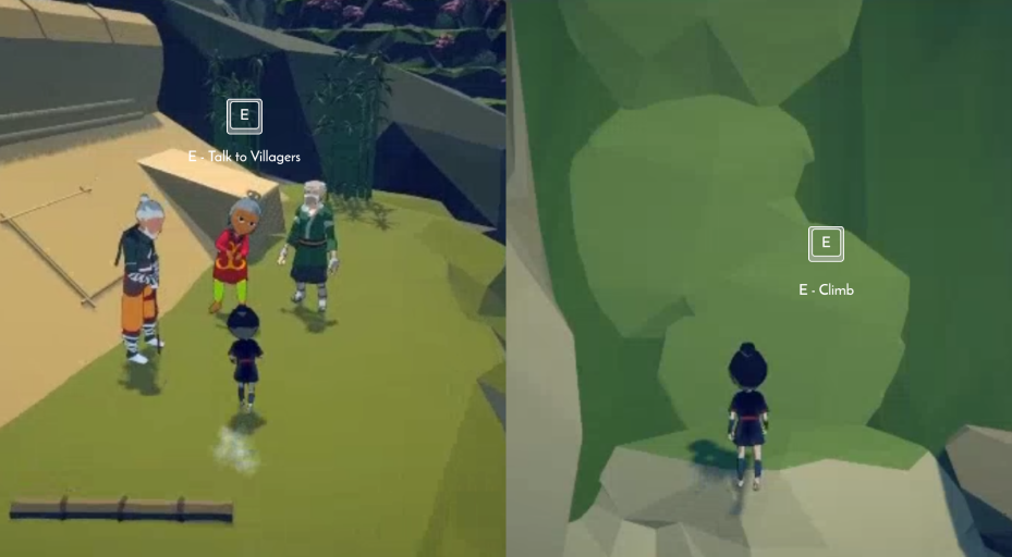 The standard keyboard controls for pc games was adopted in Moriko, as it allows players to move the mouse to control the ability to look while WASD is used for character movement. Players will learn the control gradually, with the main control of moving around first presented at the start of the game. Other controls are presented as they are needed in game. For example, the button “E” will appear alongside the words “talk” when players need to interact with an NPCs. The full controls menu is also accessible with full keyboard/controller view from the settings panel.
