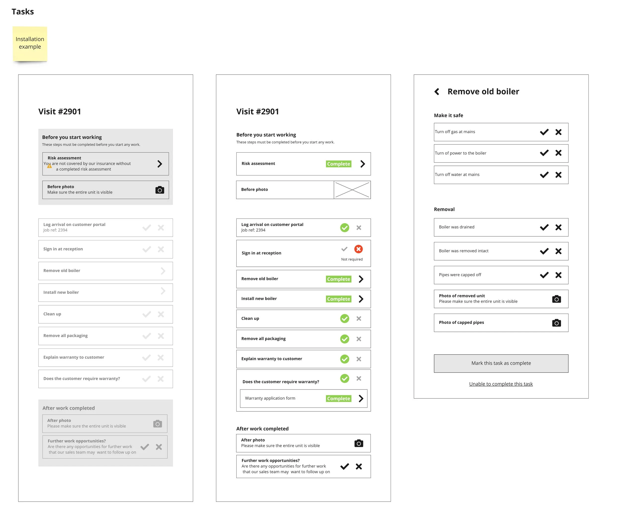Our goal is to make the process of completing tasks as streamlined as possible. We want to reduce the amount of possible errors as well as reducing the amount of time engineers need to spend on the app instead of actually doing the job.