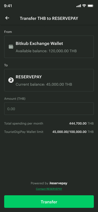 Users can move funds between their Bitkub wallet and the Tourist DigiPay wallet.